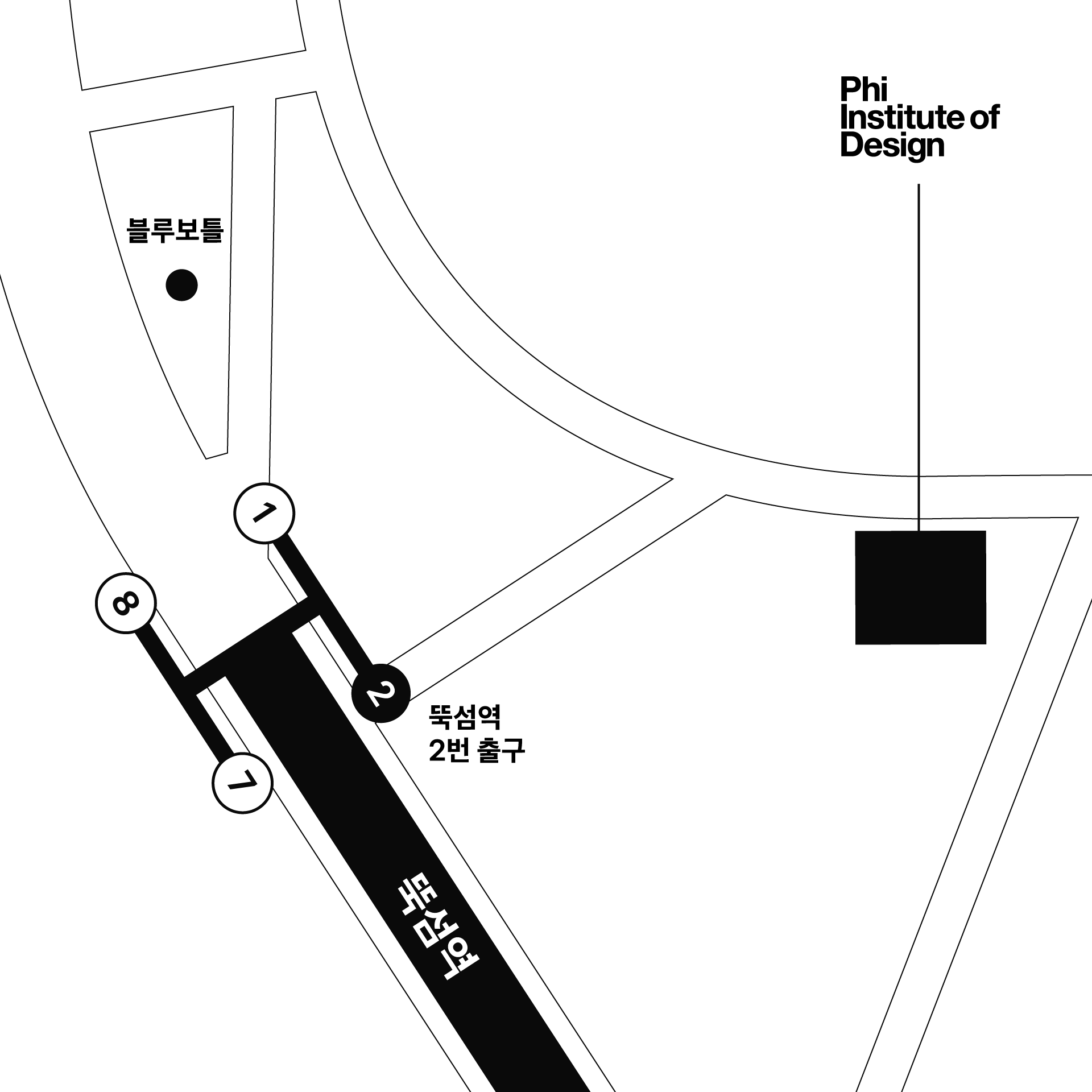 네이버 지도로 보기 →디자인 교육기관 Phi는 뚝섬역 근처에 위치하고 있습니다.